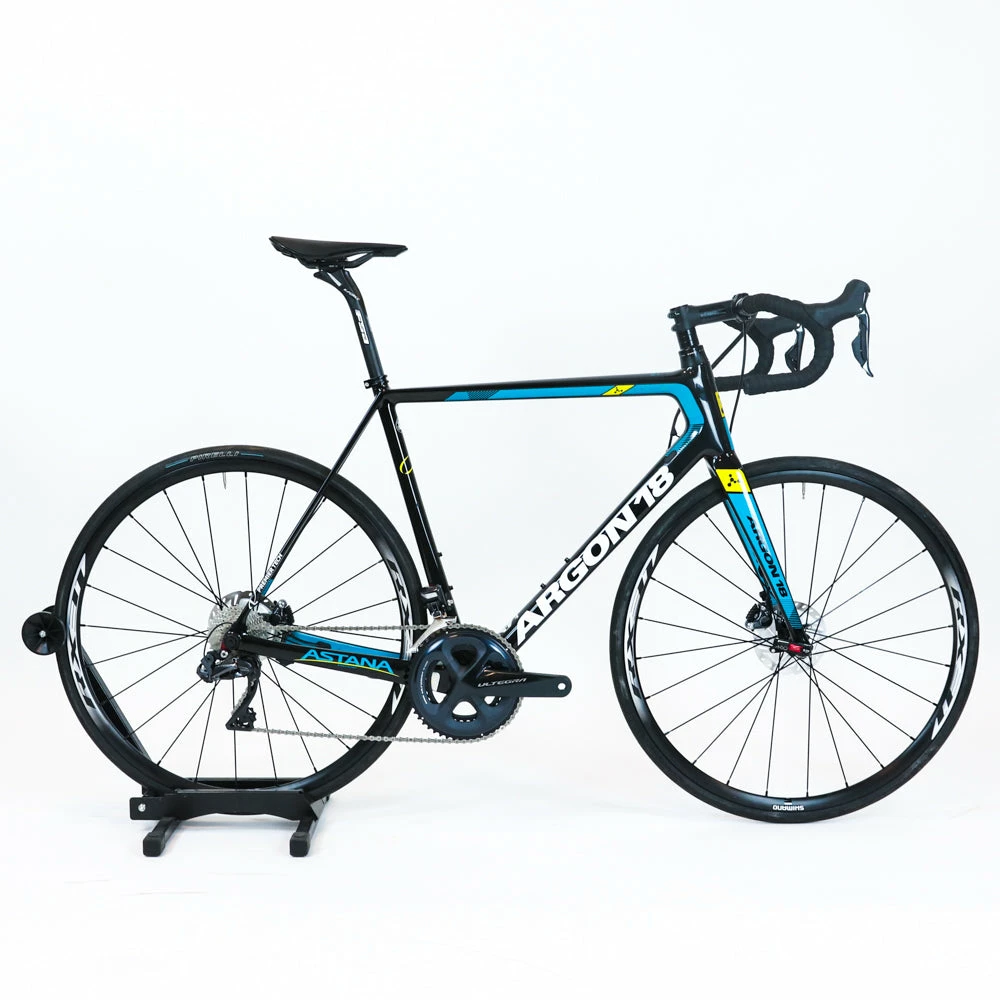 Brand new Argon 18 Gallium Pro Disc carbon road bike made for Astana Pro Team, featuring an Ultegra Di2 11-speed groupset and an as-new Shimano RX31 disc carbon wheelset.