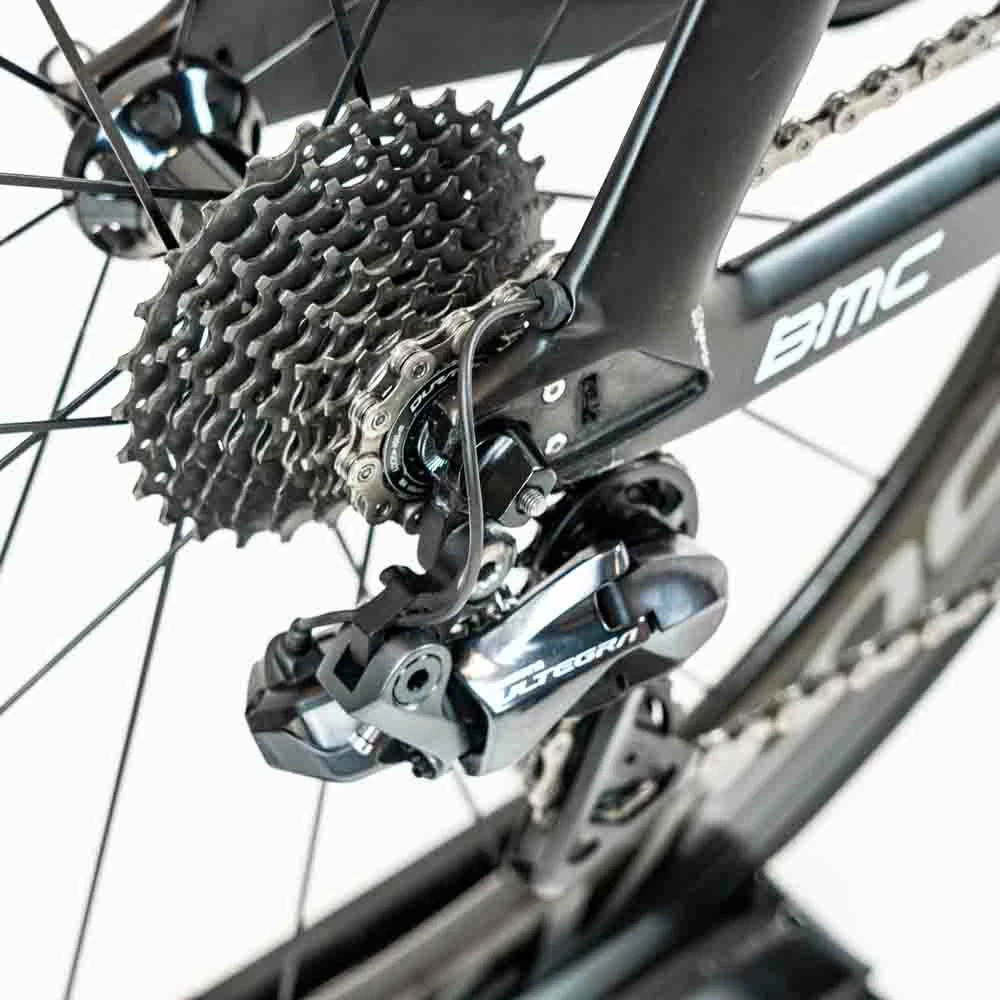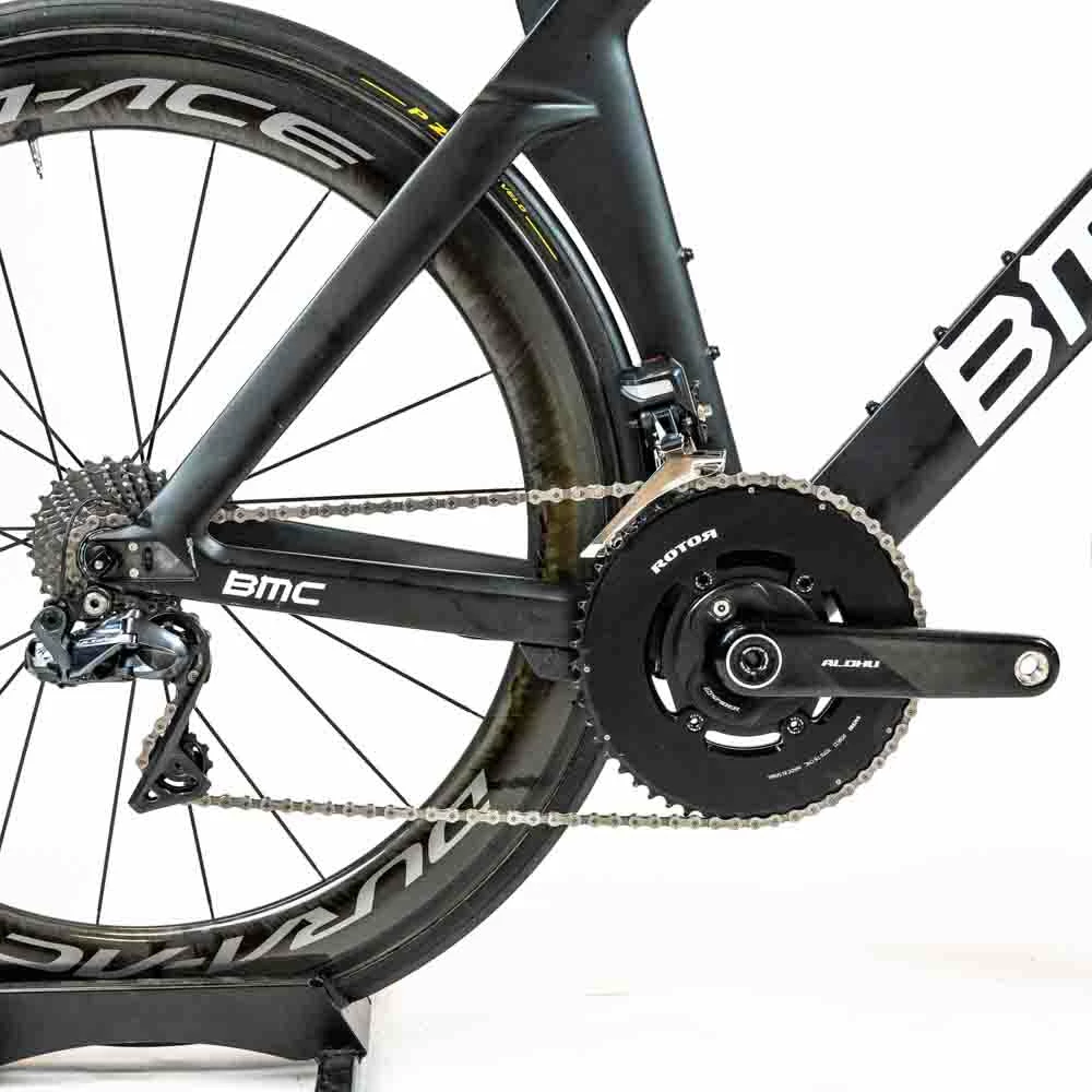The Frameset has been used but is in Very good condition. The frameset is built with a Shimano Di2 groupset, a Rotor power meter carbon crankset and team-specific BMC components. The bike will be sold without wheels, cassette, tires and tubes!