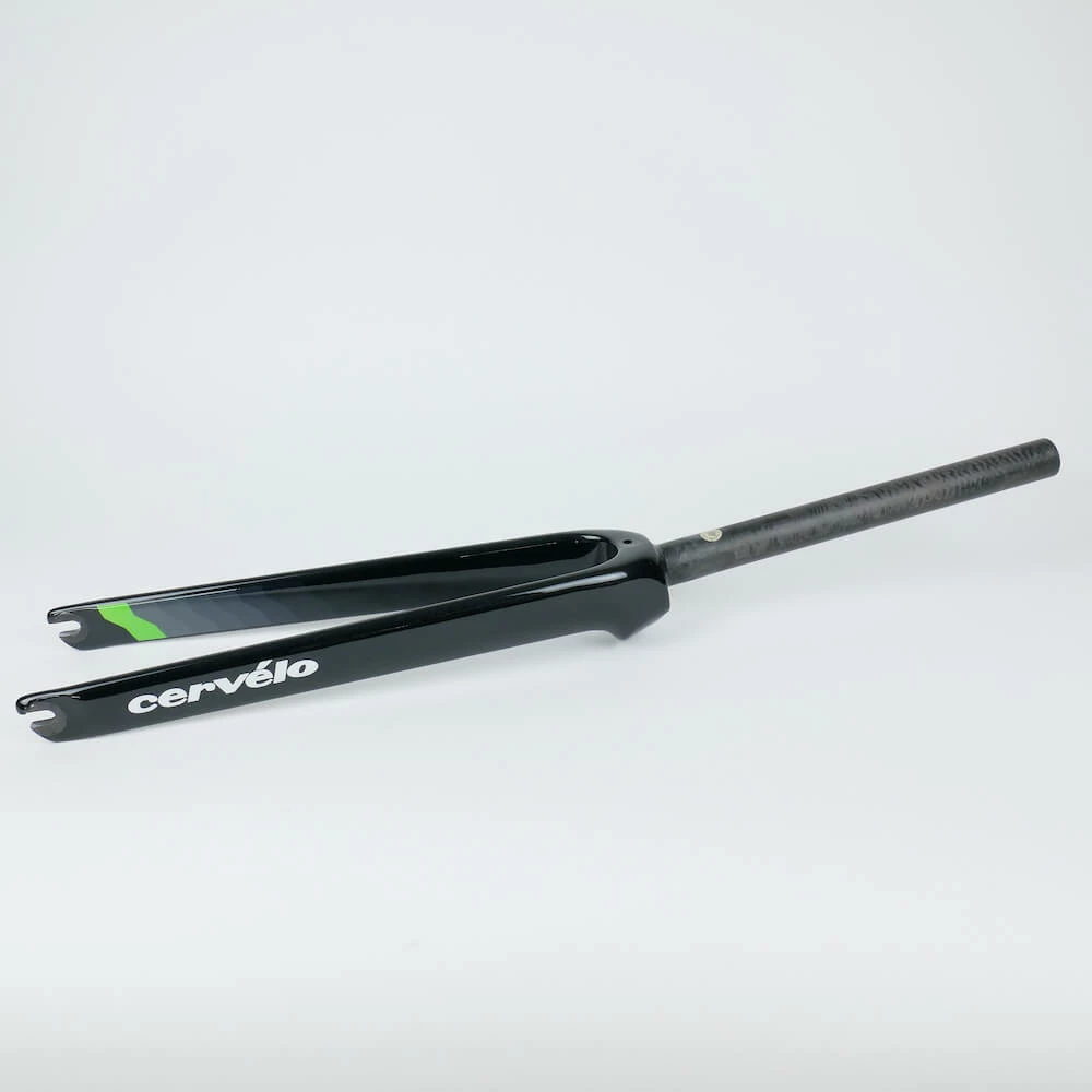 It comes from Team Dimension Data and is in their paintscheme. It is painted metallic black and with a green detail on the inside of the fork leg.