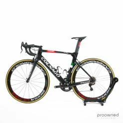 Colnago Concept carbon road bike with rim brakes and Campagnolo Super Record EPS 12-speed groupset featuring Campagnolo Bora Ultra 50 carbon wheelset. The bike was designed for UCI World Tour team UAE Emirates.