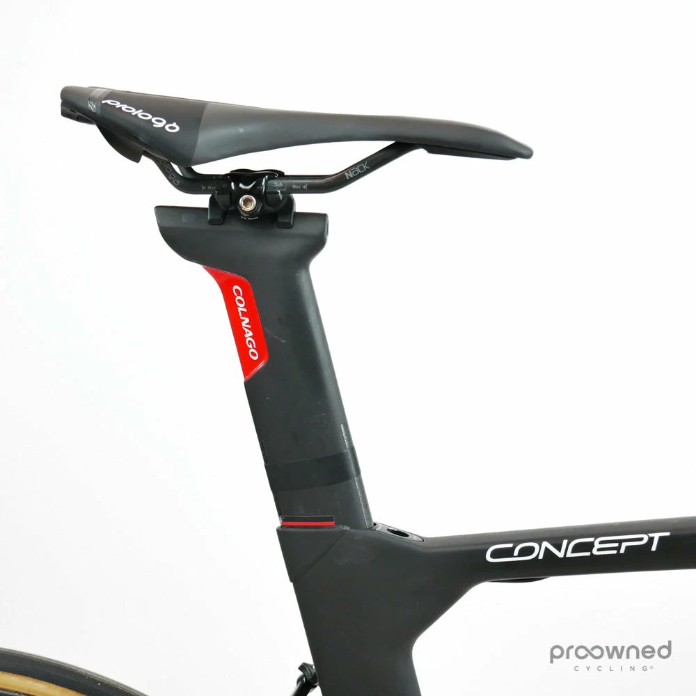 The Colnago Concept bike combines an aerodynamic design with classic features, brought together in a high-end carbon frame, built for speed. It comes with plenty of options for adjustment thanks to the innovative seat post mount, allowing the rider position to be tweaked with a high level of precision.