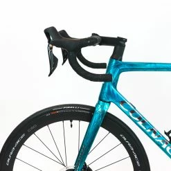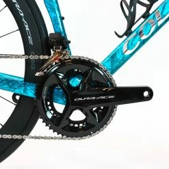 The bike is built with a brand new Shimano Dura-Ace Di2 electronic 12-speed groupset, a Shimano Dura-Ace C50 carbon disc brake wheelset, and a strong and lightweight frame-complementing cockpit.