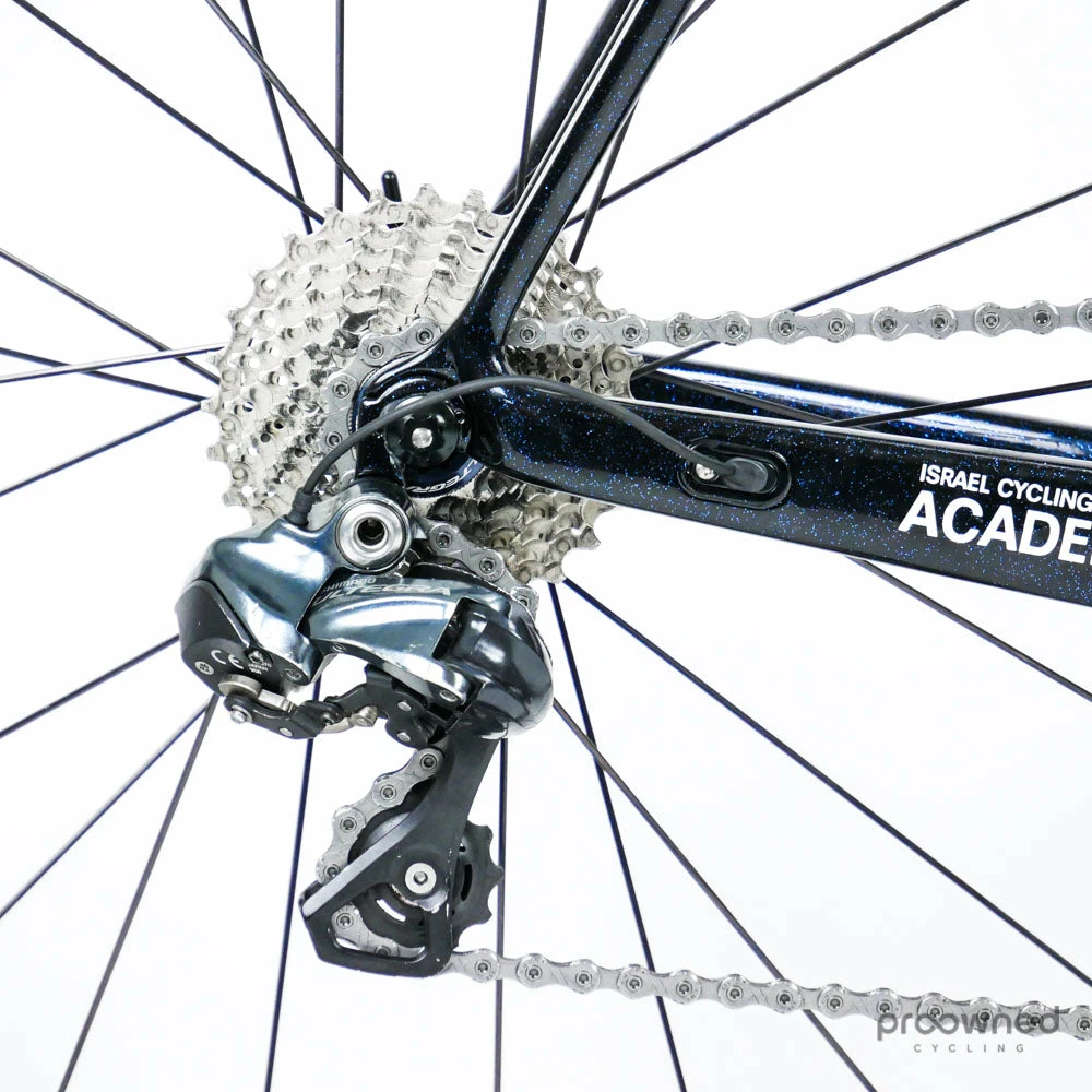 The bike comes equipped with the best components tested and proven by the World Tour Team Israel Cycling Academy. It is set up with Shimano Ultegra shifters and derailleur. A defining high-end feature of the bike is the rear brake which is positioned directly behind the bottom bracket. This significantly reduces drag and gives the bike a clean, smooth design.