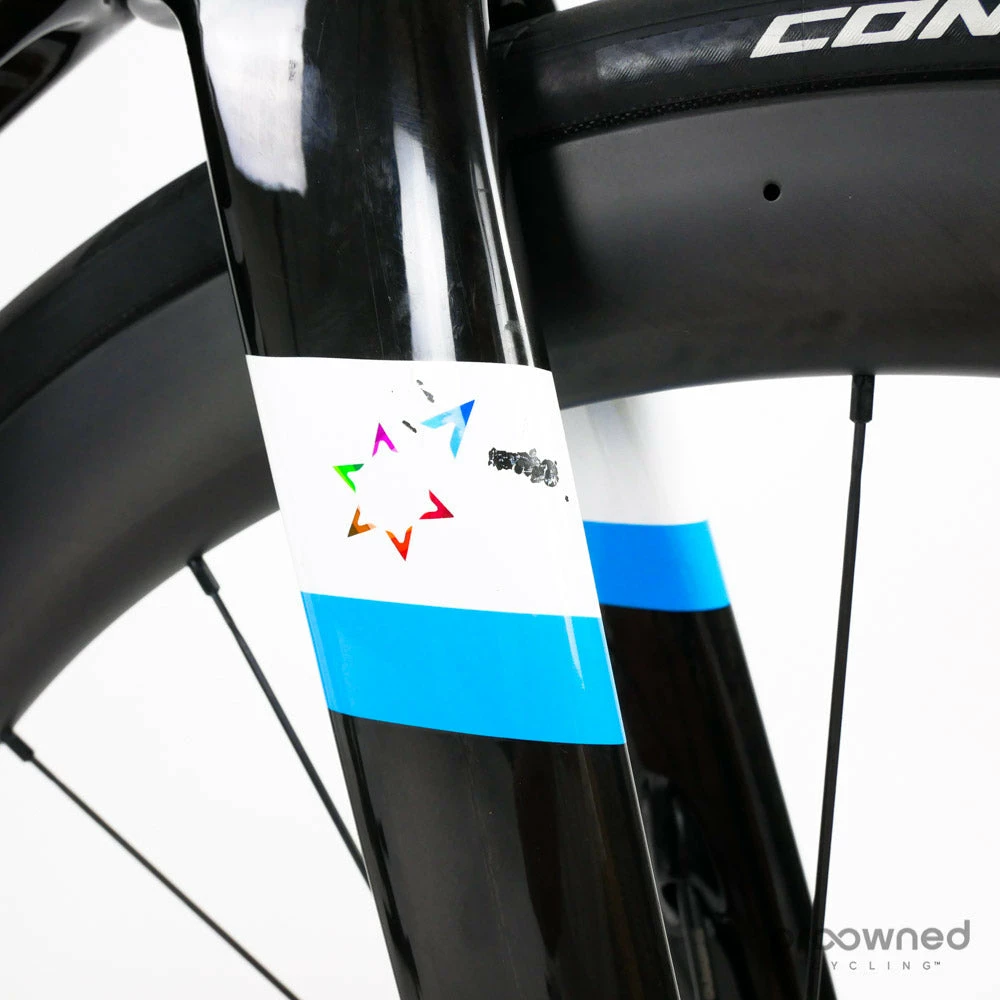 The bike is sold with Rebel Royal 45 carbon wheels (brand new) and comes with Continental GP5000 25mm tires (brand new).