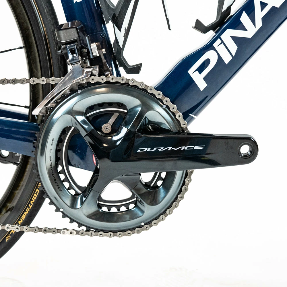 The condition of the bike frame is Very good, and the components varies from Brand new to good – please see the details below. The bike is built with a Shimano Dura-Ace Di2 groupset, team-specific components, and a Shimano Dura-Ace C40 wheelset.