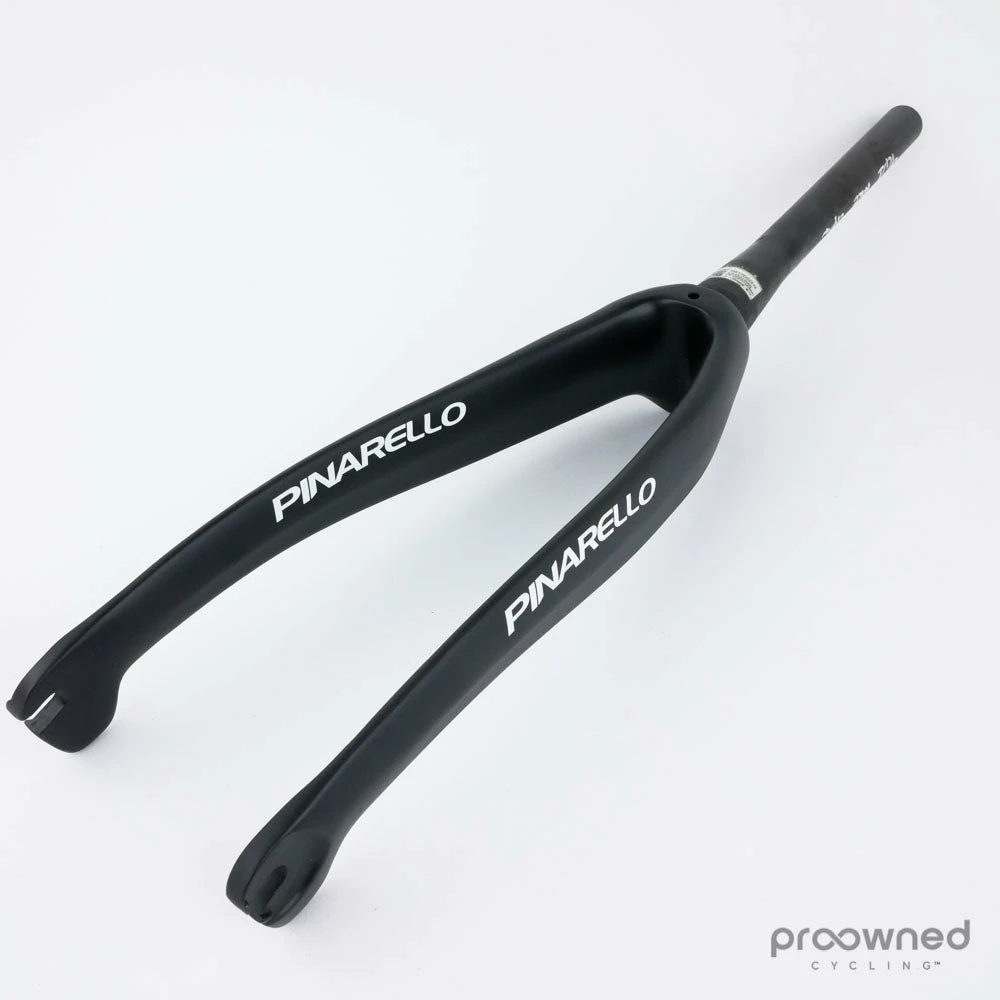 Pinarello Dogma F10 carbon spare fork. The fork fits the Pinarello Dogma F10/F10 X-Light/F8/K8/K8-S bikes. The fork steerer is uncut.