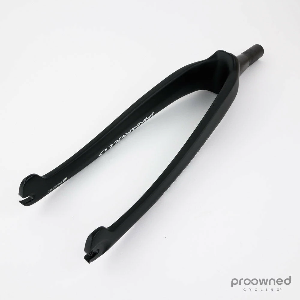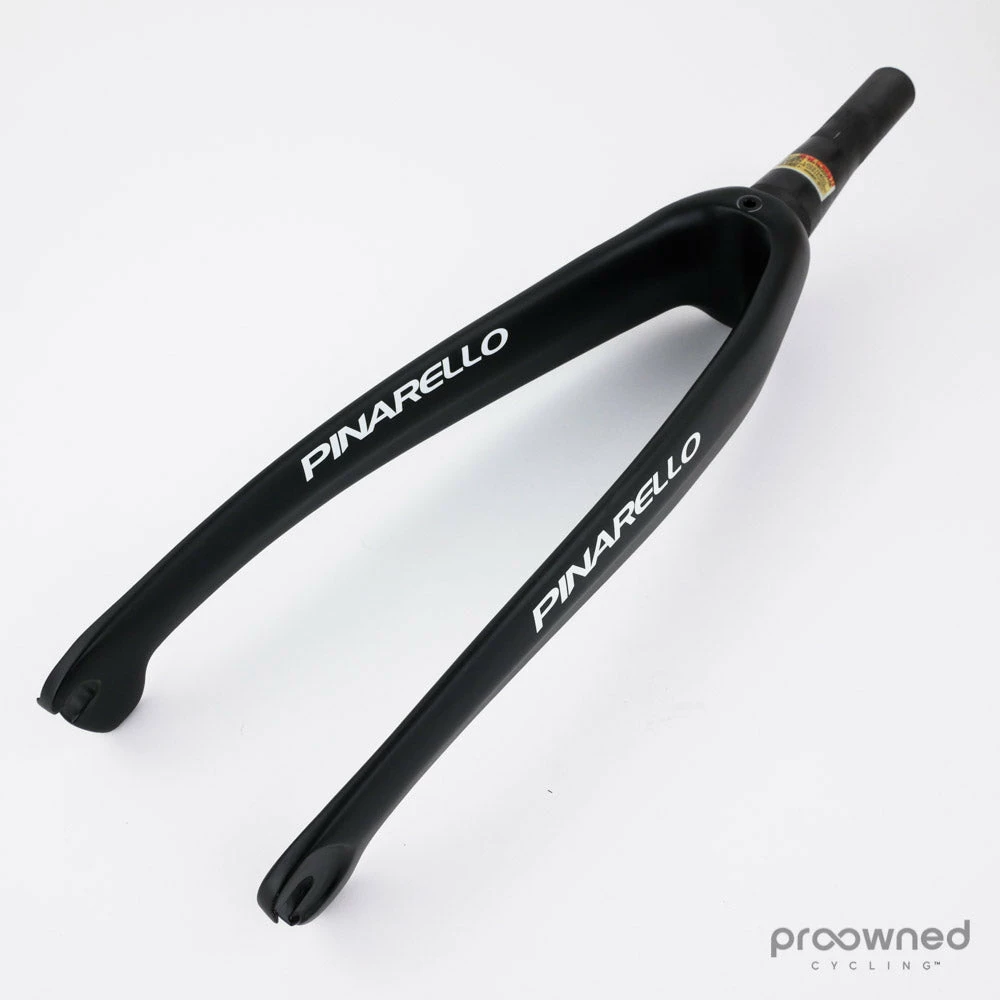 Pinarello Dogma F10 carbon spare fork. The fork fits the Pinarello Dogma F10/F10 X-Light/F8/K8/K8-S bikes. The fork steerer is cut at 14cm.