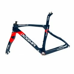 The Pinarello Dogma F is the further developed version of the Pinarello Dogma F12. The F model uses the same special Torayca 1100 1K carbon fibre as the F12. But the F frameset is still significantly lighter than the F12 frameset. A weight difference of approximately 265 grams thanks to a weight reduction of the fork, seatpost, handlebar, bearings and bolts. The twist; The Pinarello Dogma F X-Light is the weight-optimized version of the Pinarello Dogma F. The X-Light model consists of a lighter paint job and saves approximately a further 80 grams compared to the Pinarello Dogma F.