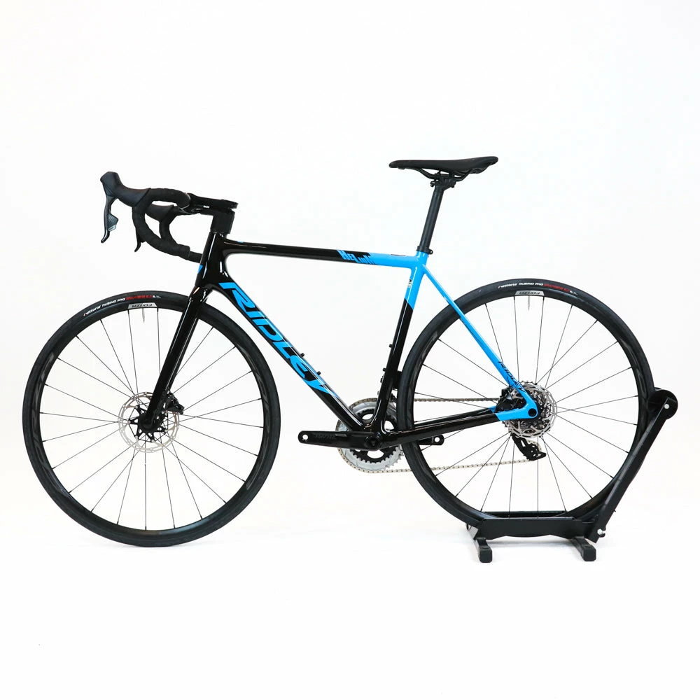 Brand new Ridley Helium carbon road bike with disc brakes and SRAM Rival eTAP AXS 12-speed electronic groupset featuring a Forza Norte wheelset.