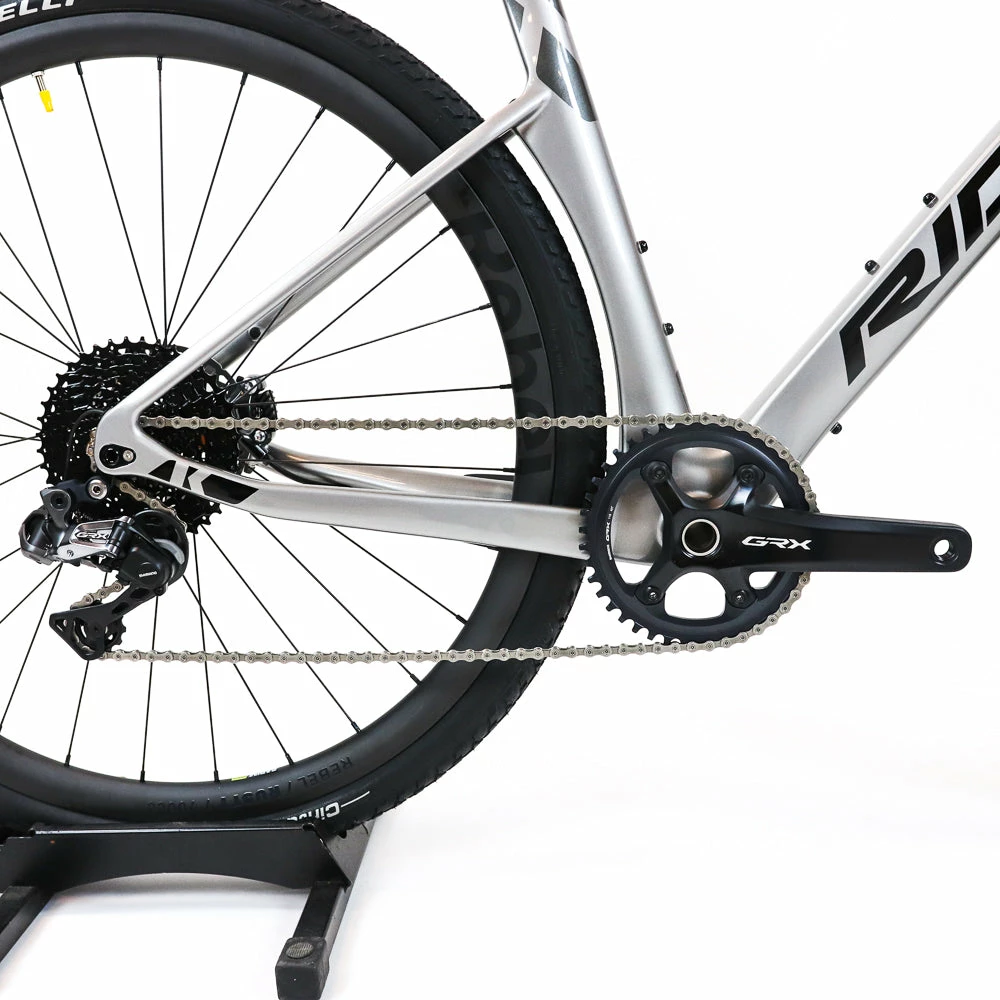 Brand new Ridley Kanzo Fast carbon gravel bike with disc brakes and Shimano GRX Di2 groupset featuring a Rebel Rusty disc carbon wheelset.