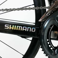 The team mechanics have well maintained this bike, and our Mechanic has furthermore restored it. It is equipped with the top-of-the-line electronic Dura-Ace 9170 2×11 speed Disc groupset by Shimano.
