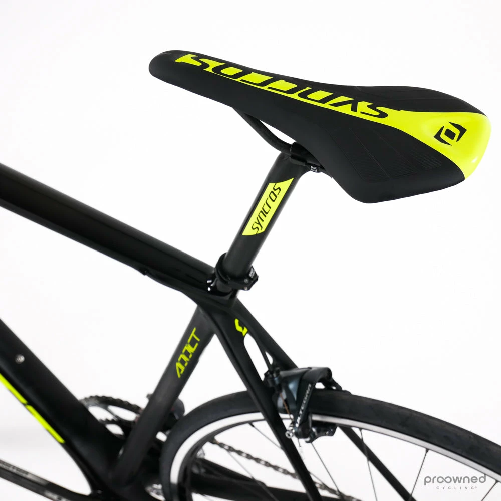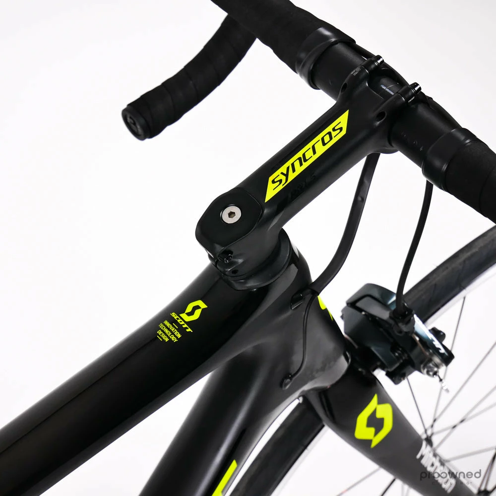 The bike frame is brand new and some components are as new – please see the details below. The bike is built with a Shimano Di2 groupset, team-specific Syncros components, and a Forza Norte wheelset.
