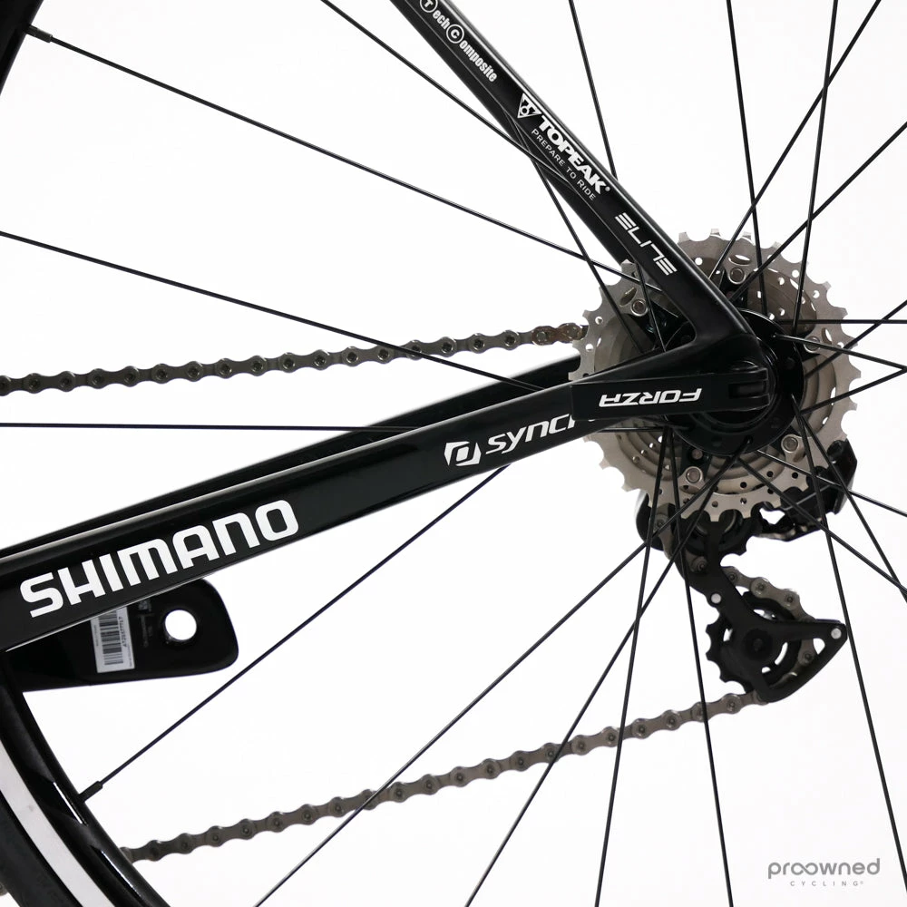 The bike frame is as new and some components are also as new – please see the details below. The bike is built with a Shimano Di2 groupset, team-specific Syncros components, and a Forza Norte wheelset.
