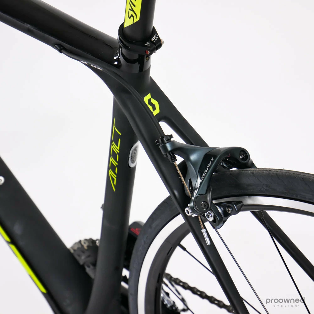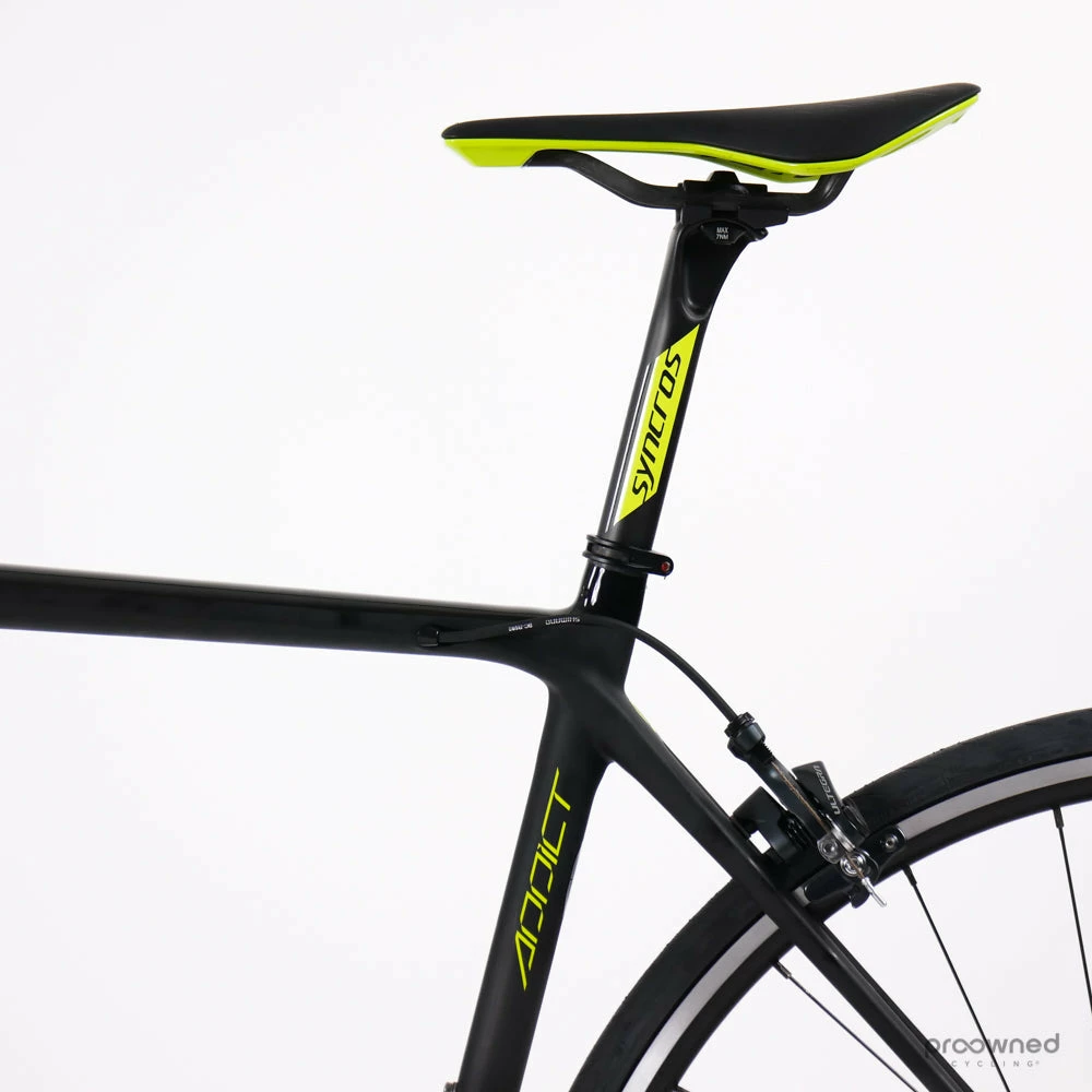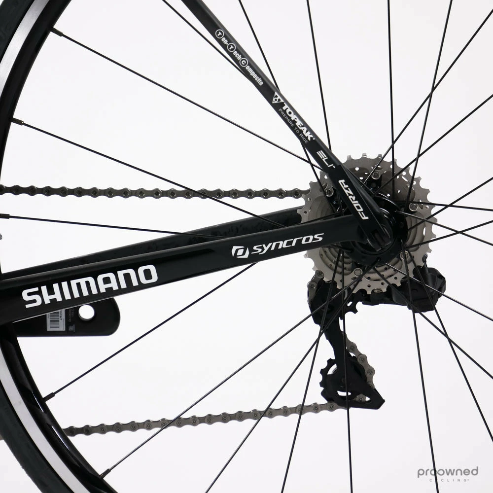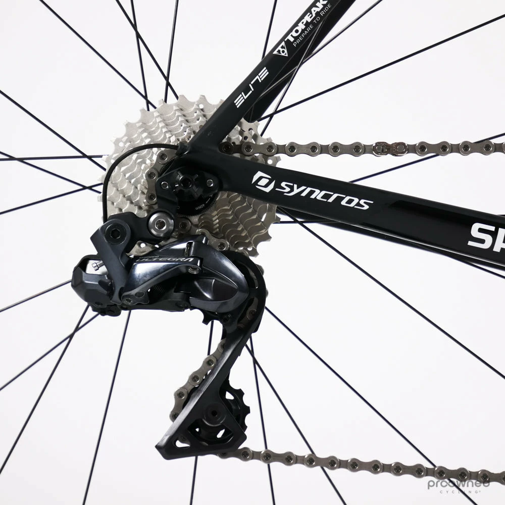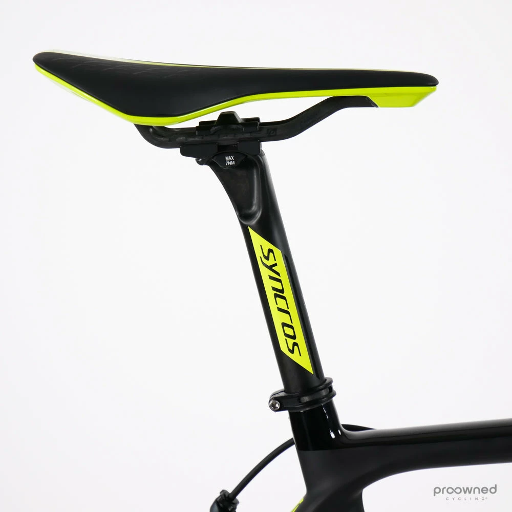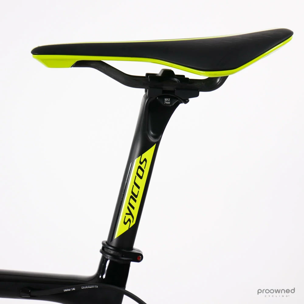 The bike frame is brand new and some components are as new – please see the details below. The bike is built with a Shimano Di2 groupset, team-specific Syncros components, and a Forza Norte wheelset.