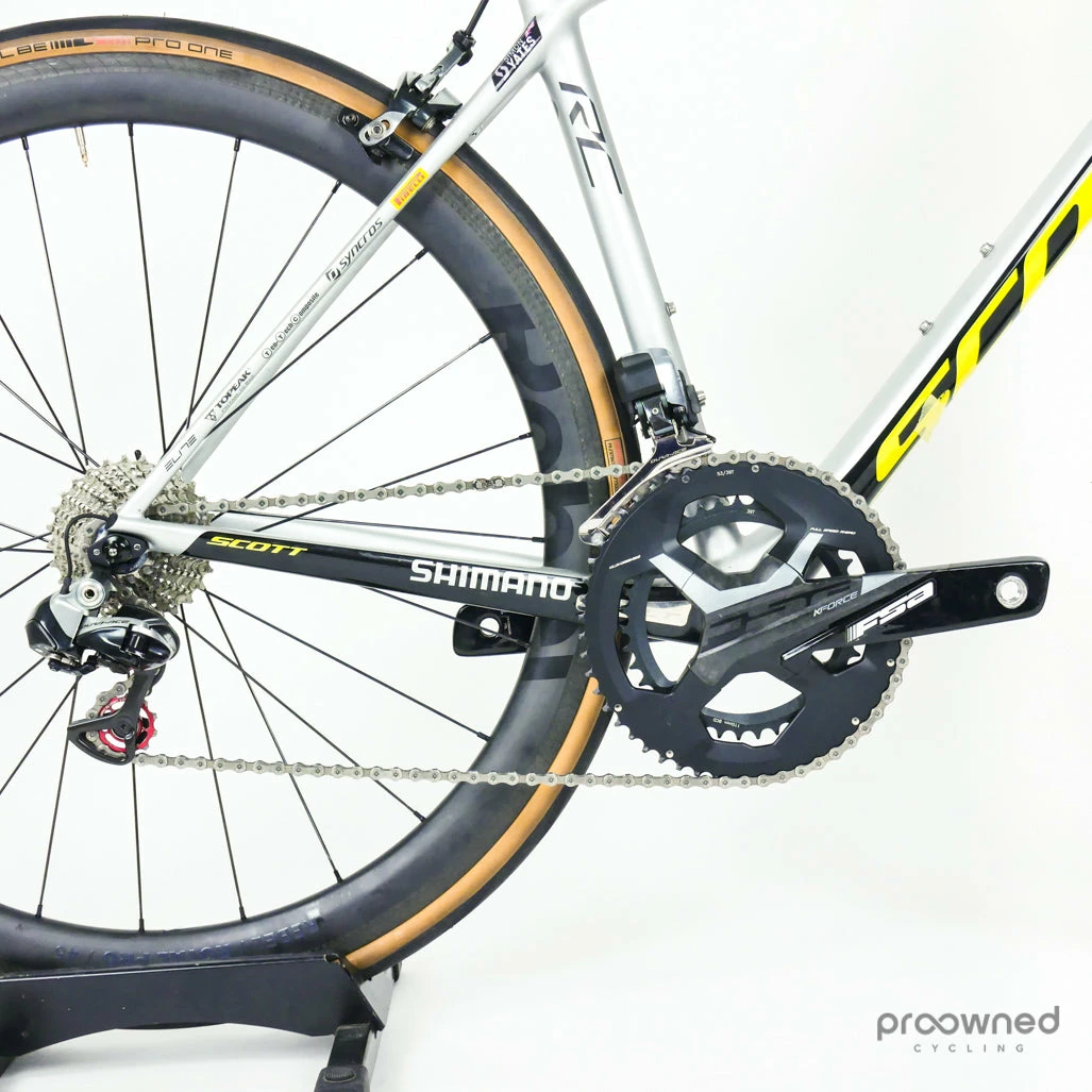 The bike frame is as new and some components also as new – please the details below. The bike is built with a Shimano Di2 groupset, team-specific Syncros components, and a Forza Norte wheelset.