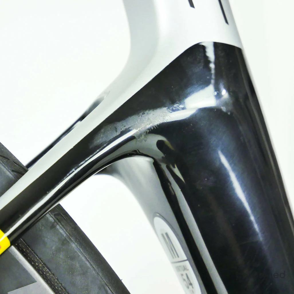 - Scratches: fork, down tube, seat stay, head tube, saddle