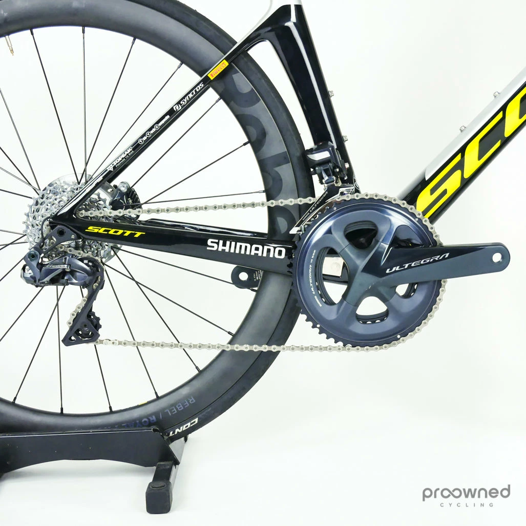 Scott Foil Disc RC PRO carbon road bike from Mitchelton-Scott. The bike was designed for the 2018 season. The bike has been built up with a brand new Shimano Ultegra Di2 groupset.