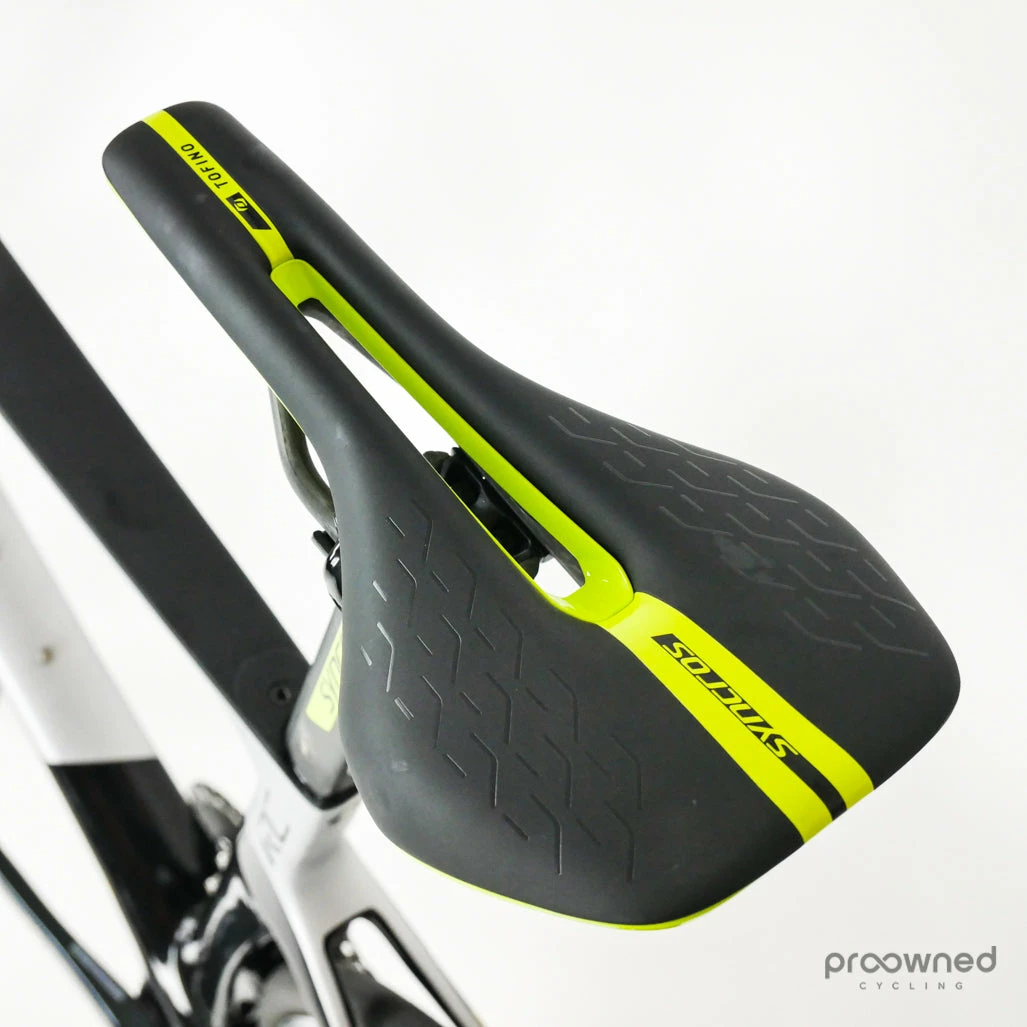 The bike frame is brand new and some components are used – please the details below. The bike is built with a Shimano Di2 groupset, team-specific Syncros components, and a Forza Norte wheelset.