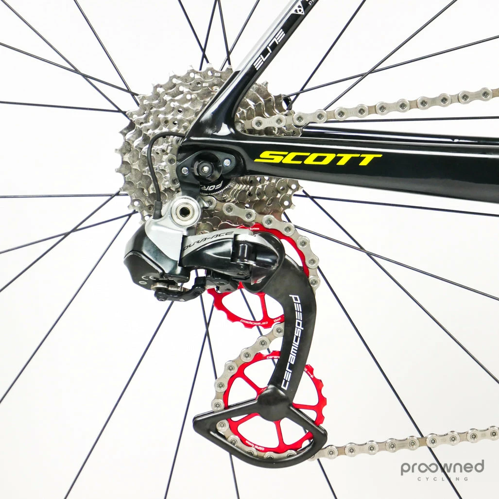 Extras: Ceramic pulley, chaincatcher, oversized pulley, and brand new Shimano Di2 battery including Di2 charger.