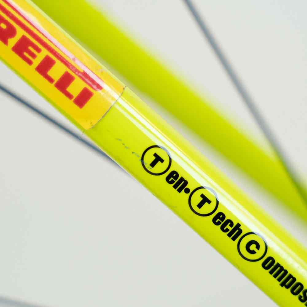 The condition of the bike frame is Very good, and the components are Brand new – please see the details below. The bike is built with a Shimano Ultegra Di2 groupset, team-specific components, and a Token disc wheelset.