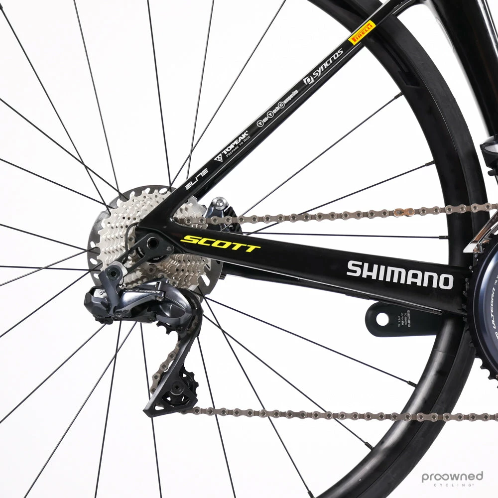 The Scott Foil will, in other words, help you to perform on your highest possible level. The bike is in fine condition. The bike is built with a brand new Shimano Ultegra Di2 groupset, team-specific Syncros components, and a brand new Forza Norte wheelset.