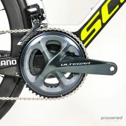 The Frameset has been used very little and is therefore in great condition and the frame is as new. The bike is built with a Shimano Ultegra Di2 groupset, team-specific Syncros components, and a Token C45R carbon clincher wheelset.
