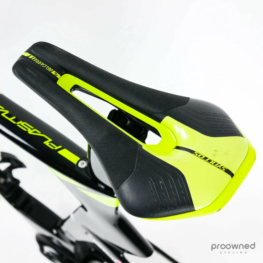 The Scott Plasma 5 HMX is the ultimate weapon in the race against the clock. Thanks to Scott’s restless aerodynamic refinement the Plasma 5 has proven itself to be an uncompromising speed machine. The HMX carbon lay-up is designed to maximize stiffness to ensure that every watt is transformed to speed.